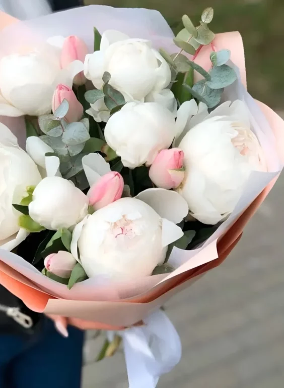 Доставка цветов / Пионы, Тюльпаны / Букет из тюльпанов и пионов