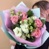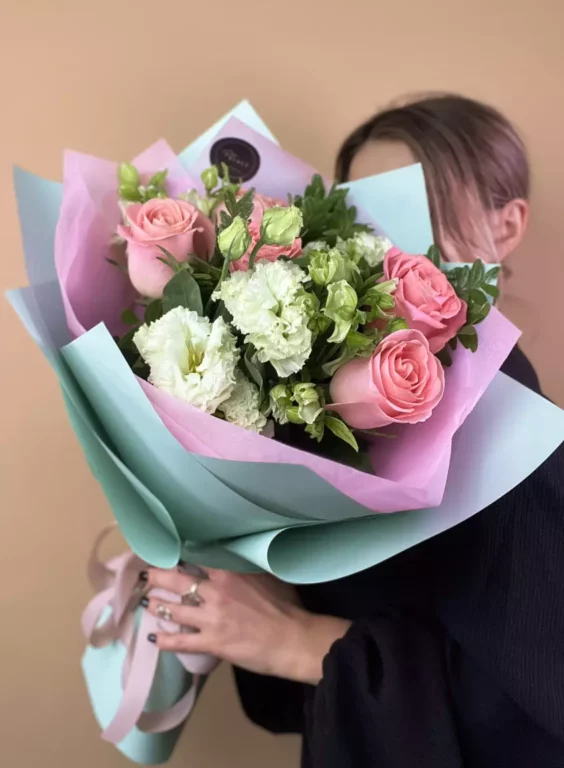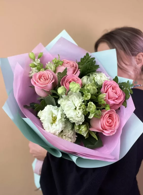 Доставка цветов / Альстромерии, Лизиантусы, Розы / Букет «Kleo»