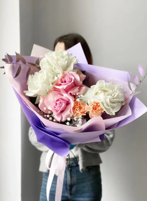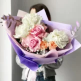 Доставка цветов / Гвоздики, Гипсофилы, Розы / Букет «Melodiya dushi»