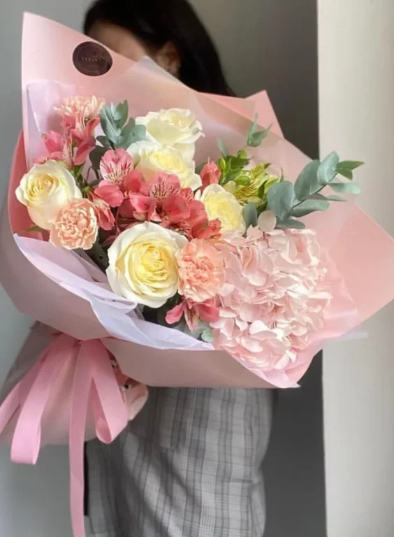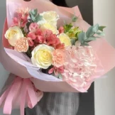 Доставка цветов / Альстромерии, Гвоздики, Гортензии, Розы / Букет «Solnechnoe utro»