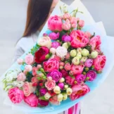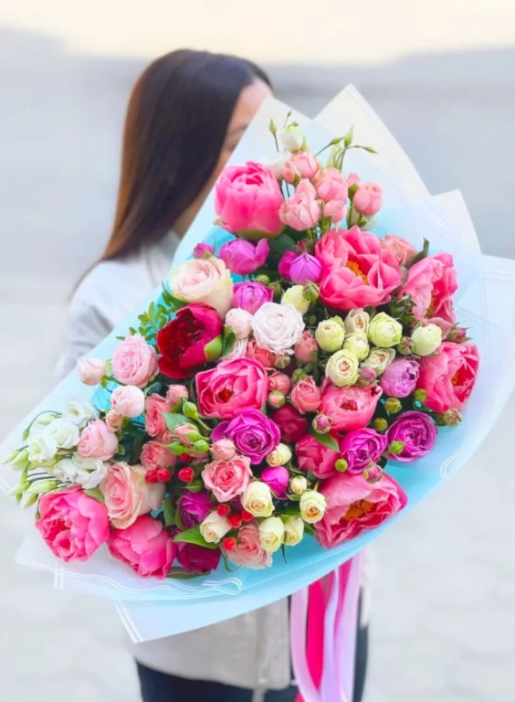 Доставка цветов / Лизиантусы, Пионы, Розы / Букет «Vavilonskij sad»