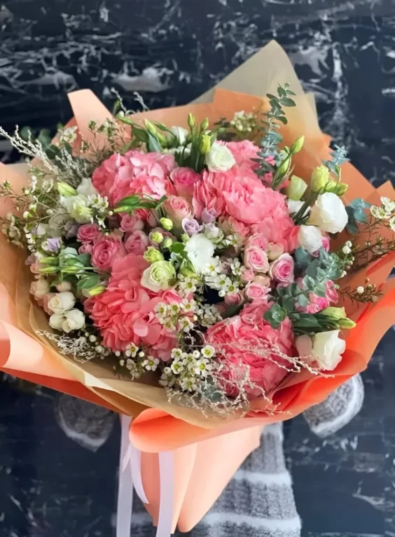 Доставка цветов / Гортензии, Лизиантусы, Розы / Букет «Velikoe chuvstvo»