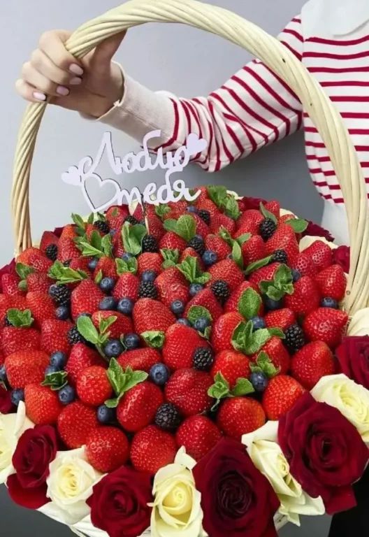 Доставка цветов / Съедобные букеты / Корзина с клубникой и цветами