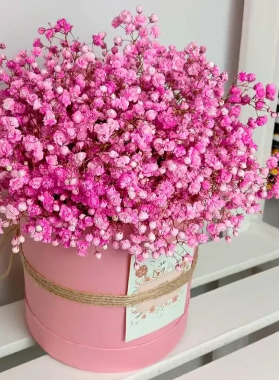Доставка цветов / Гипсофилы / Розовая гипсофила в шляпной коробке