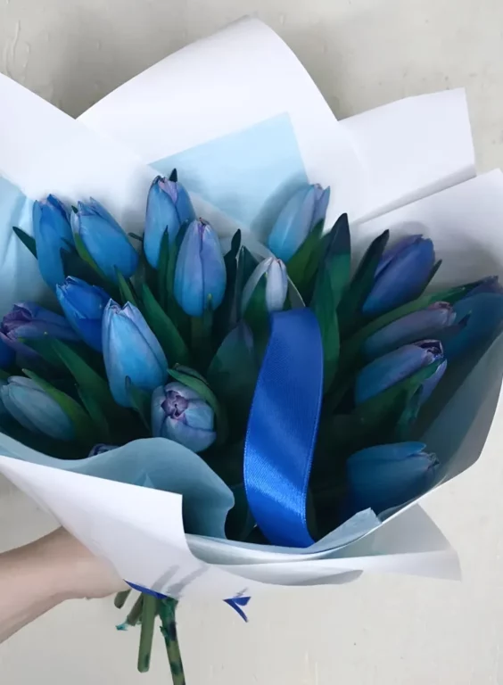Синие тюльпаны символизируют спокойствие и умиротворение из-за синего цвета. Когда цветы